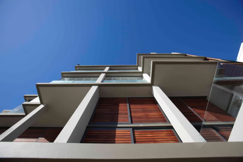 Both the west sun and the ocean views were competing for design attention on the main elevations and this was resolved by introducing timber sliding shutters in an aluminium frame and using block out curtains internally. The roof terrace houses a swimming pool with a clear glass end on the ocean side.